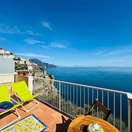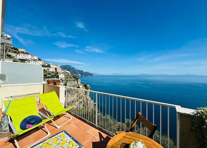Yourhome - Casa Noemi 阿马尔菲设有大厨房和配露台,阳台 和沙发的客房. 客人可以游览周边的地标,公寓距离福罗瑞菲奥多海滩有2.7公里,距离天堂修道院有2公里.